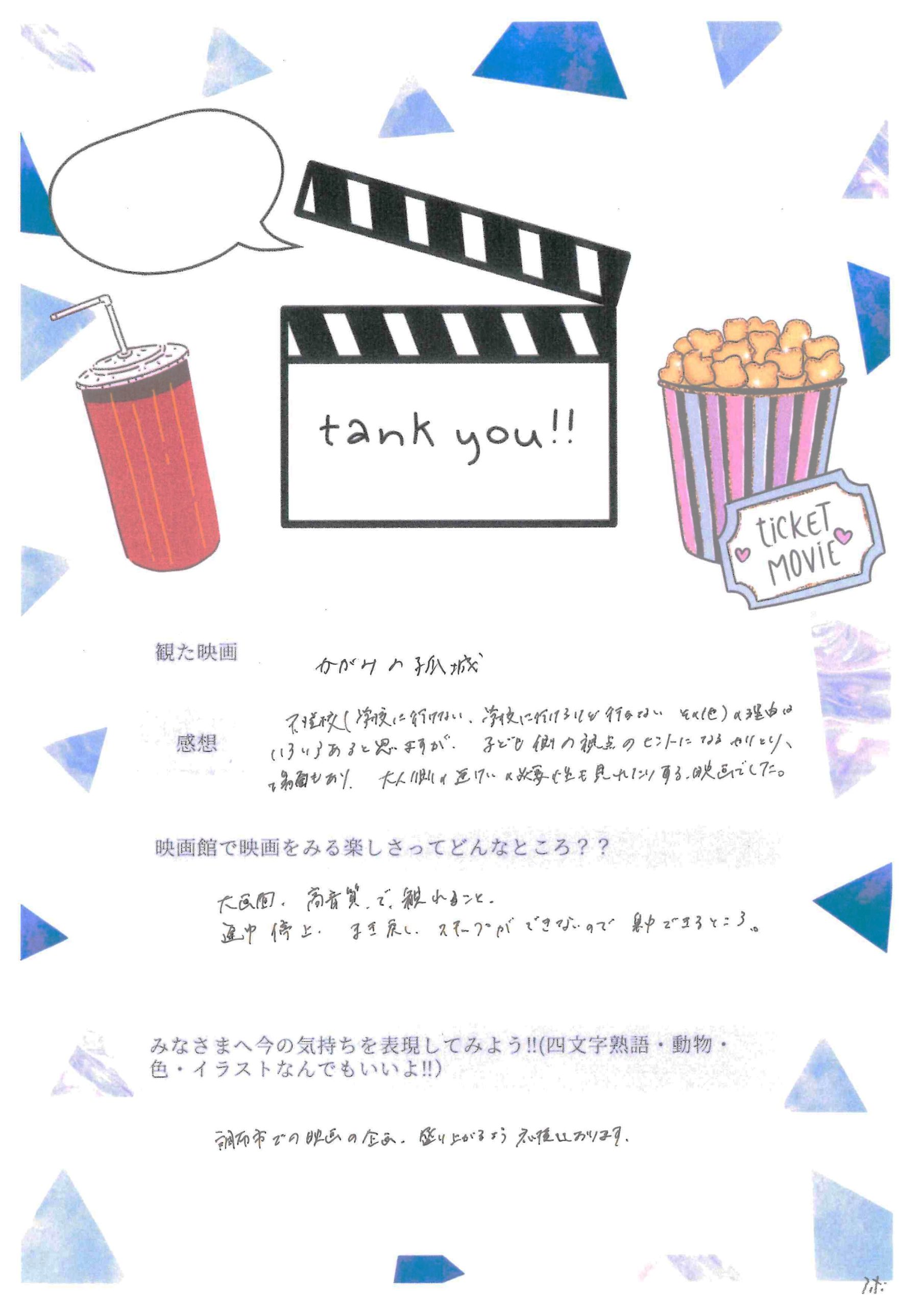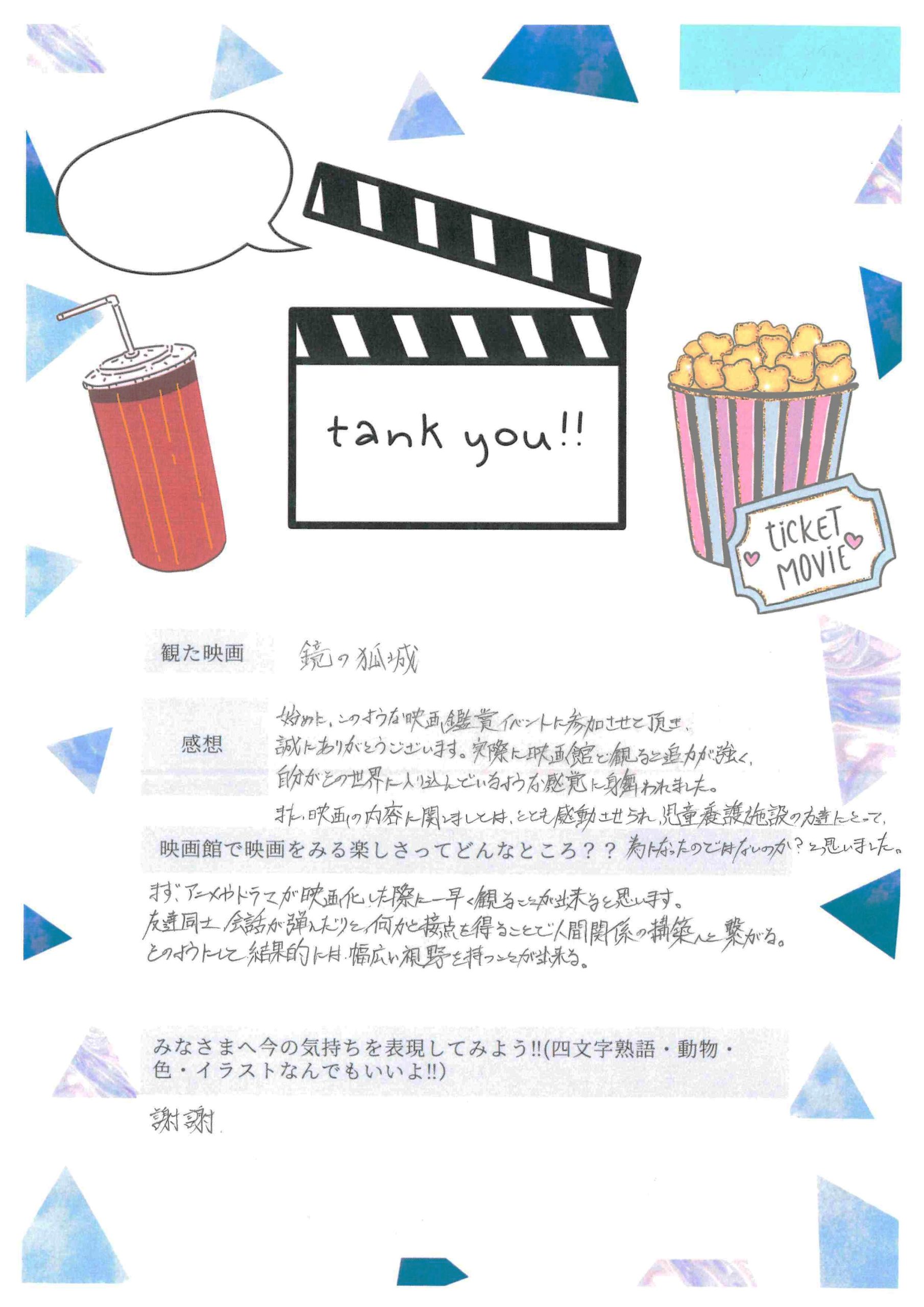 『かがみの孤城』上映会への調布市内児童養護施設の子どもたちのご招待の報告
